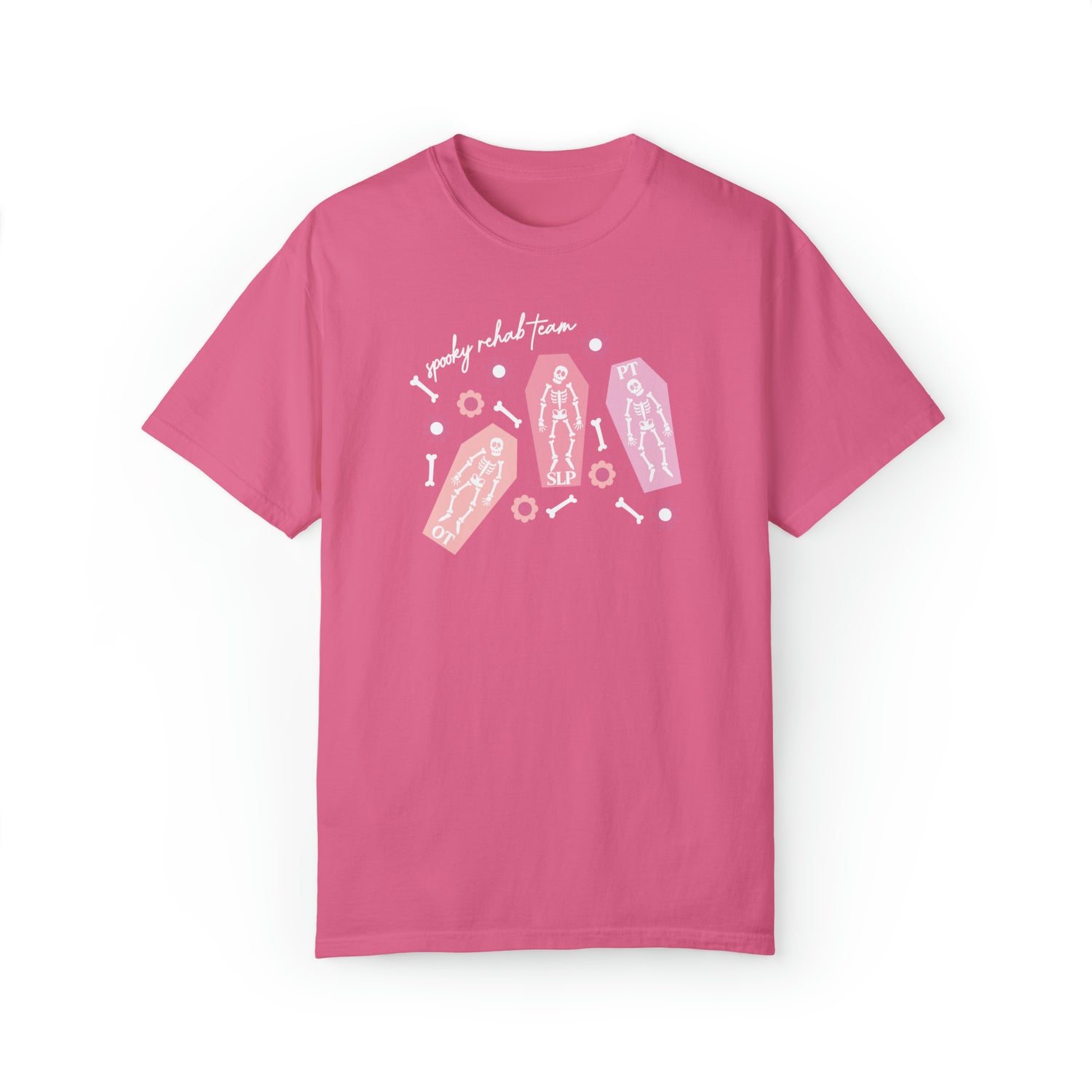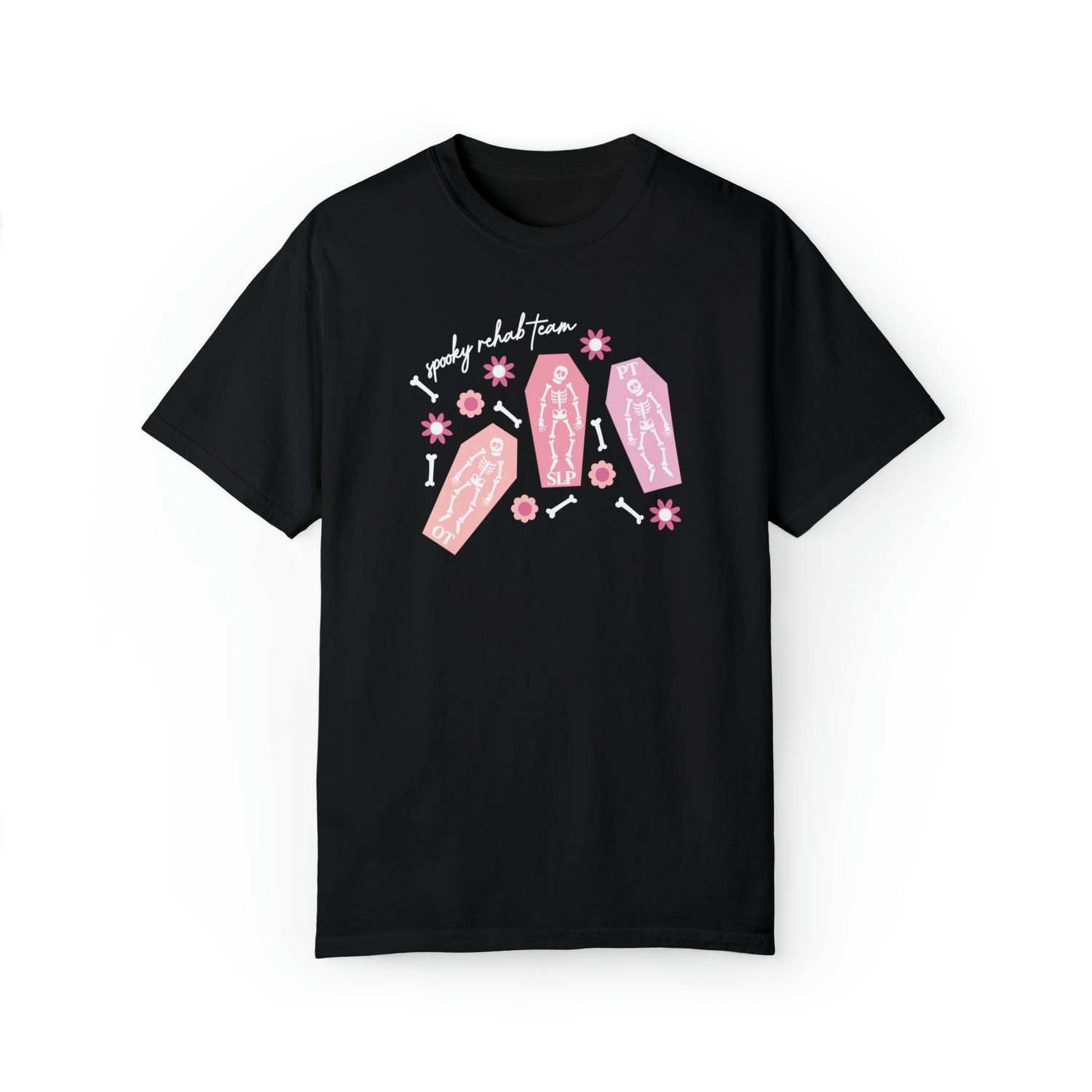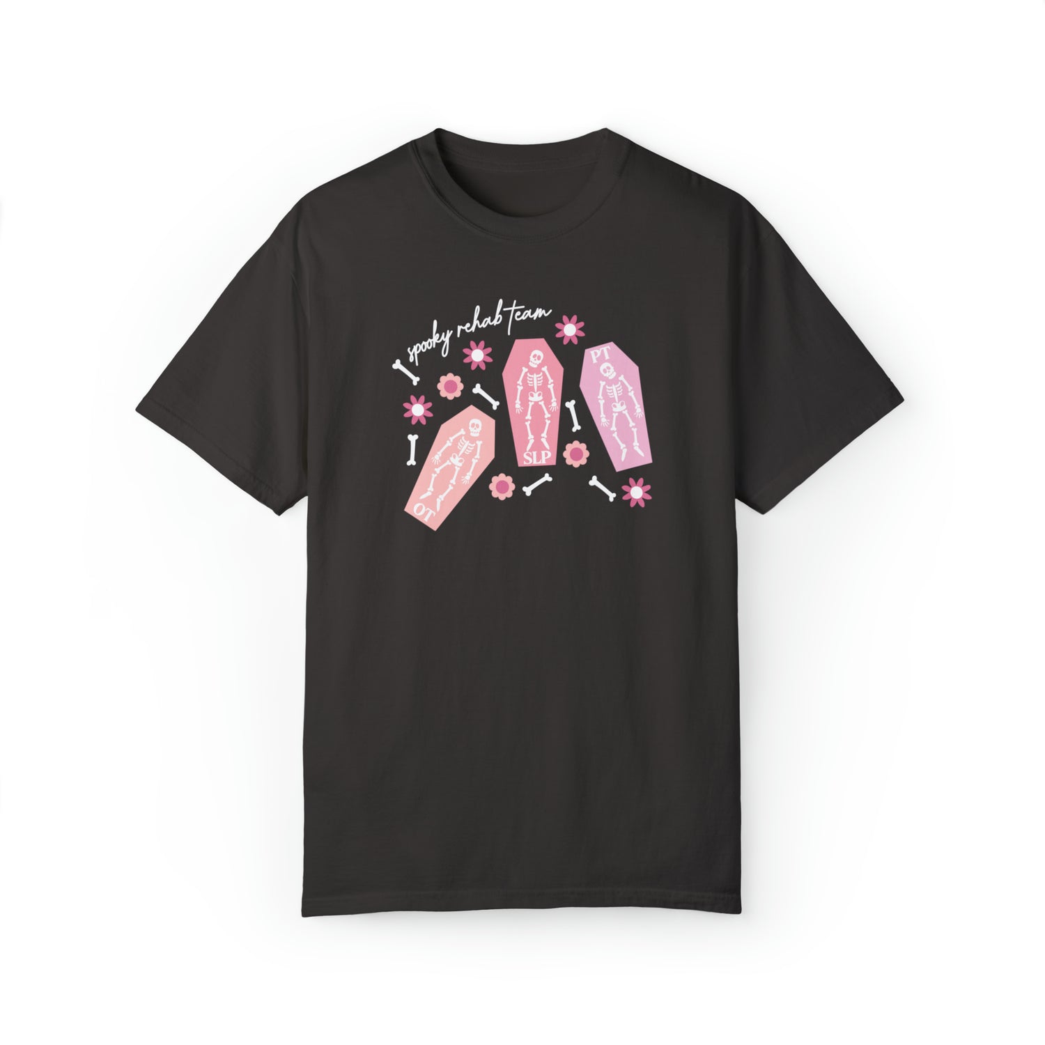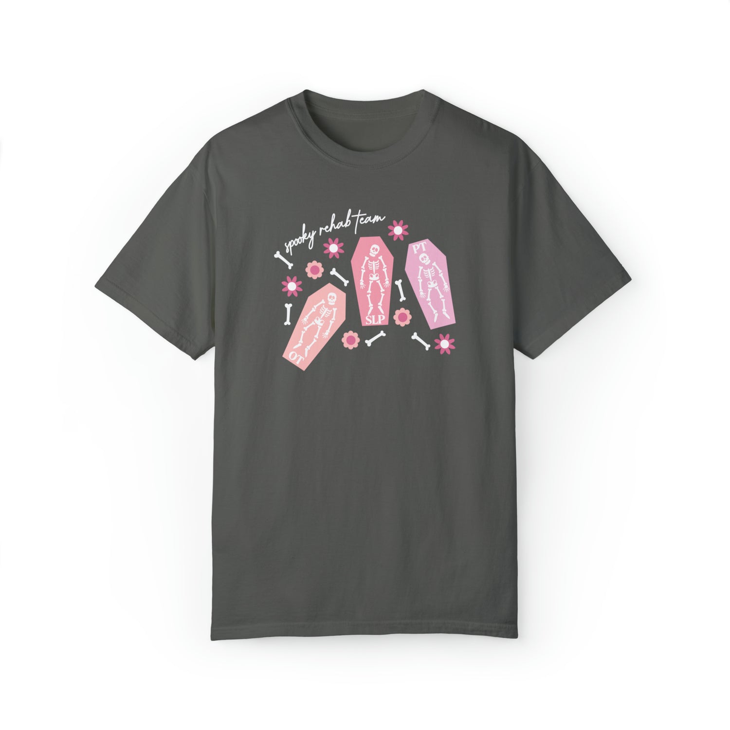 spooky rehab team skeleton bones comfort colors tee
