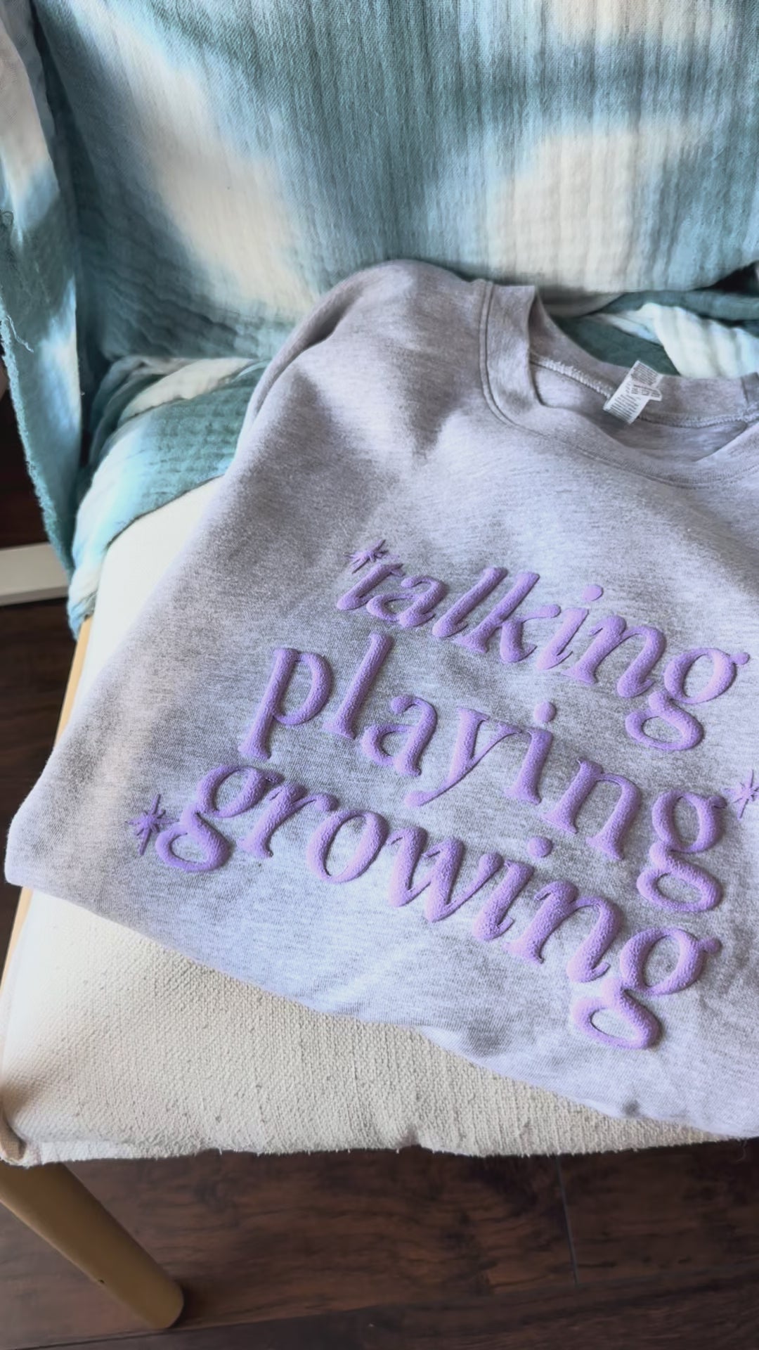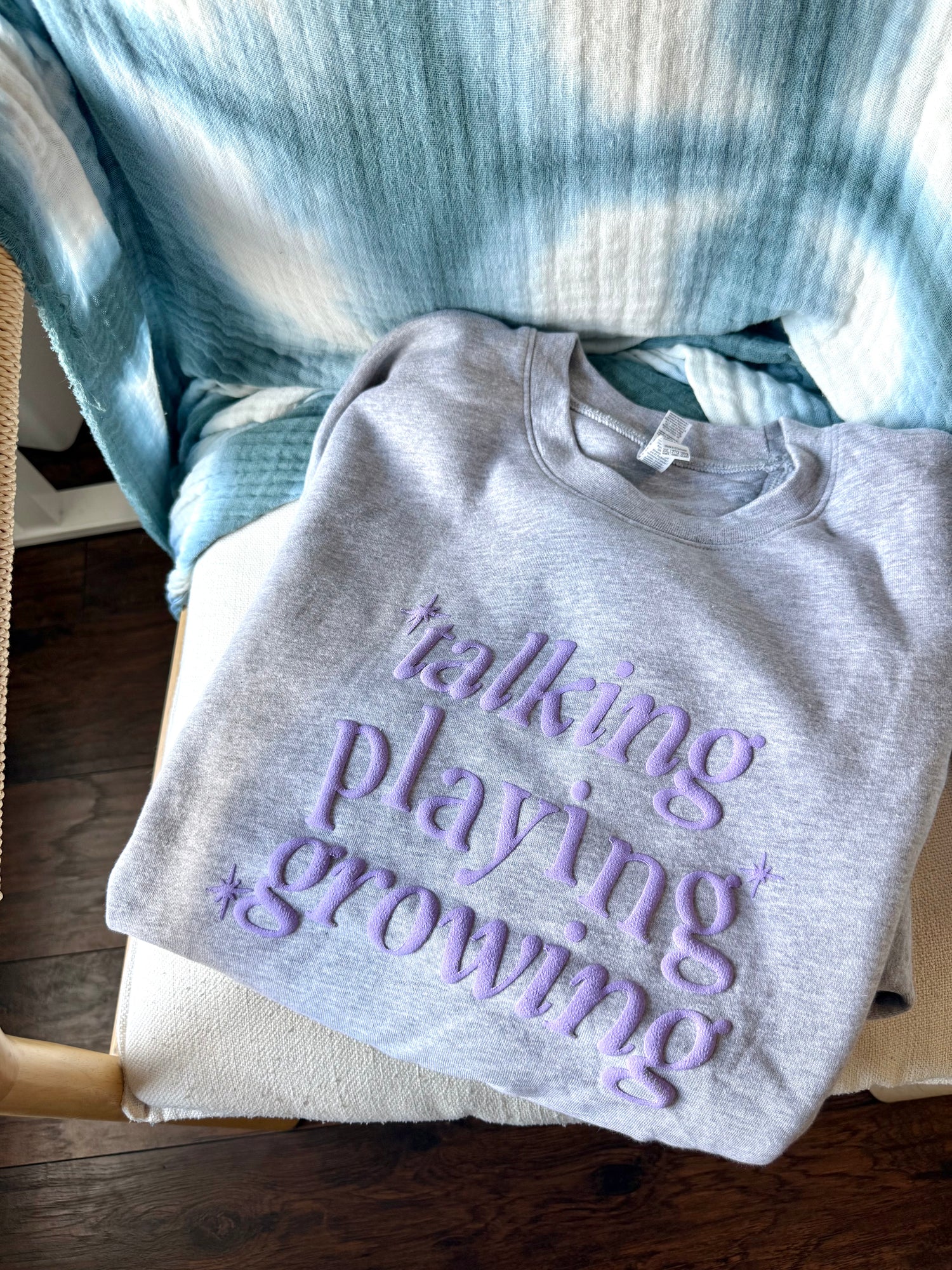 🌟puff-printed text in light purple font